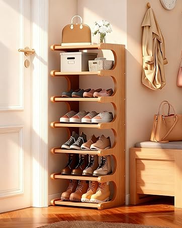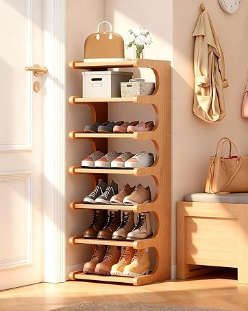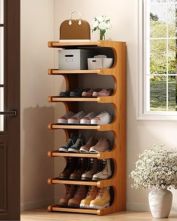 7-Tier Vertical Shoe Rack, Bamboo Free Standing Shoe Rack Shelf, Shoe Storage Stand, Entryway Shoe Tower, Vertical Shoe Organizer for Narrow Closet, Entryway, Hallway