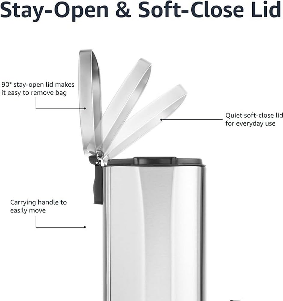Amazon Basics 30 Liter / 7.9 Gallon Soft-Close Trash Can with Foot Pedal - Stainless Steel, Satin Nickel Finish