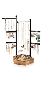 2 side door equipped 8 bronze hooks and wood tray, can hang your necklace well and protect it from scratches.
