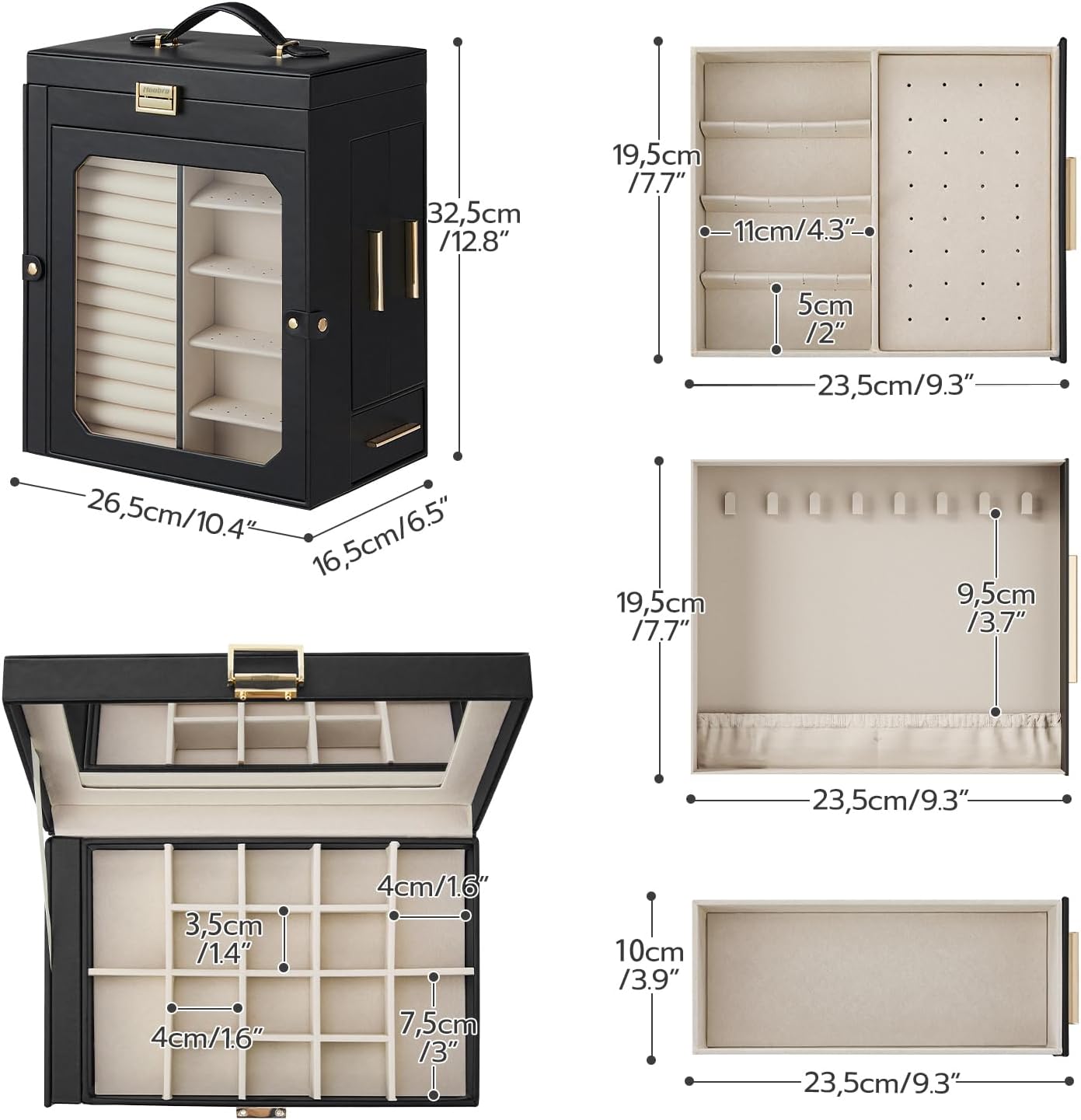 Are you looking for the perfect gift for your wife, mother, or best friend? Then look no further – this elegant jewelry case will be a wonderful gift for that special someone. Simple and elegant! With this jewelry organizer box, she can own her favorite jewelry forever!