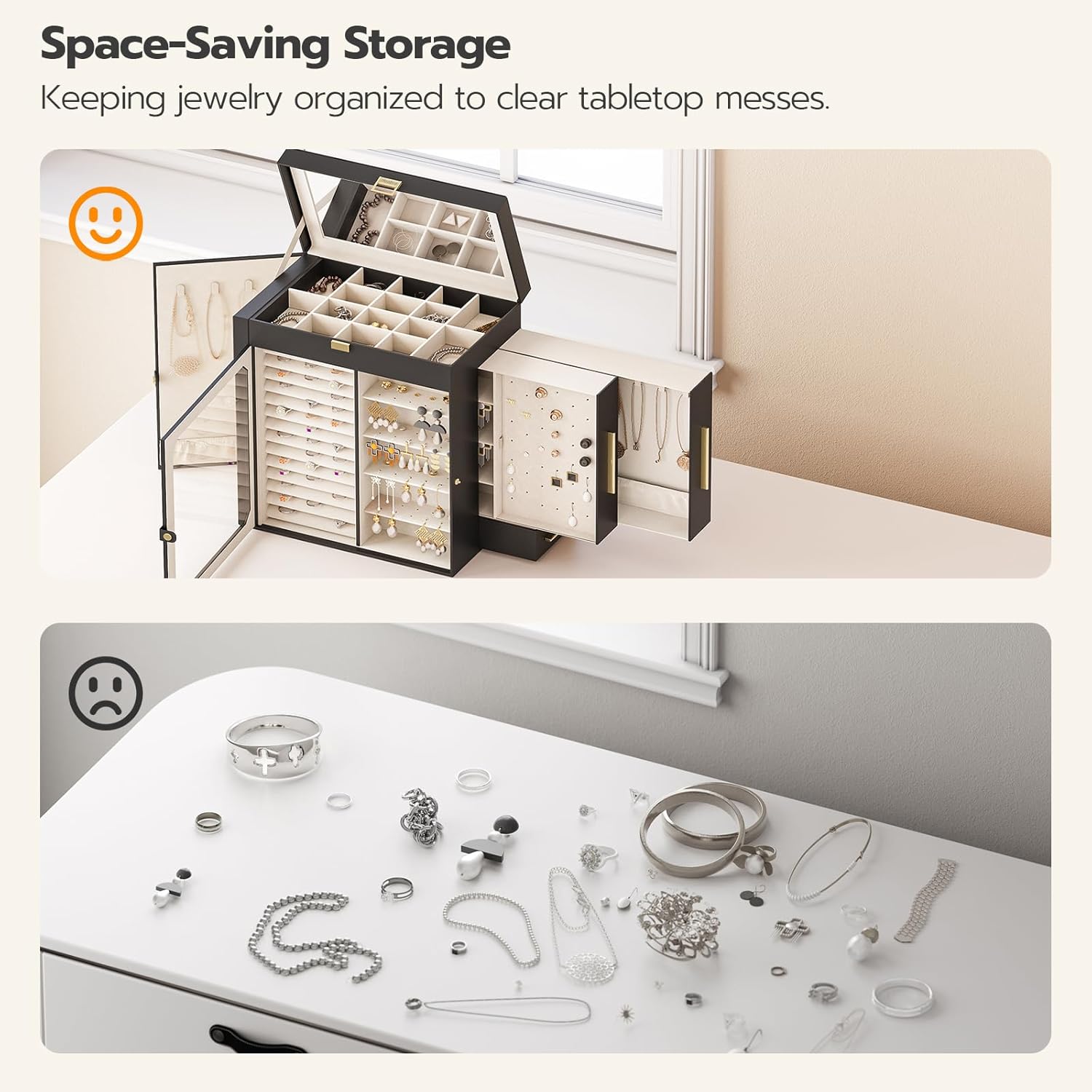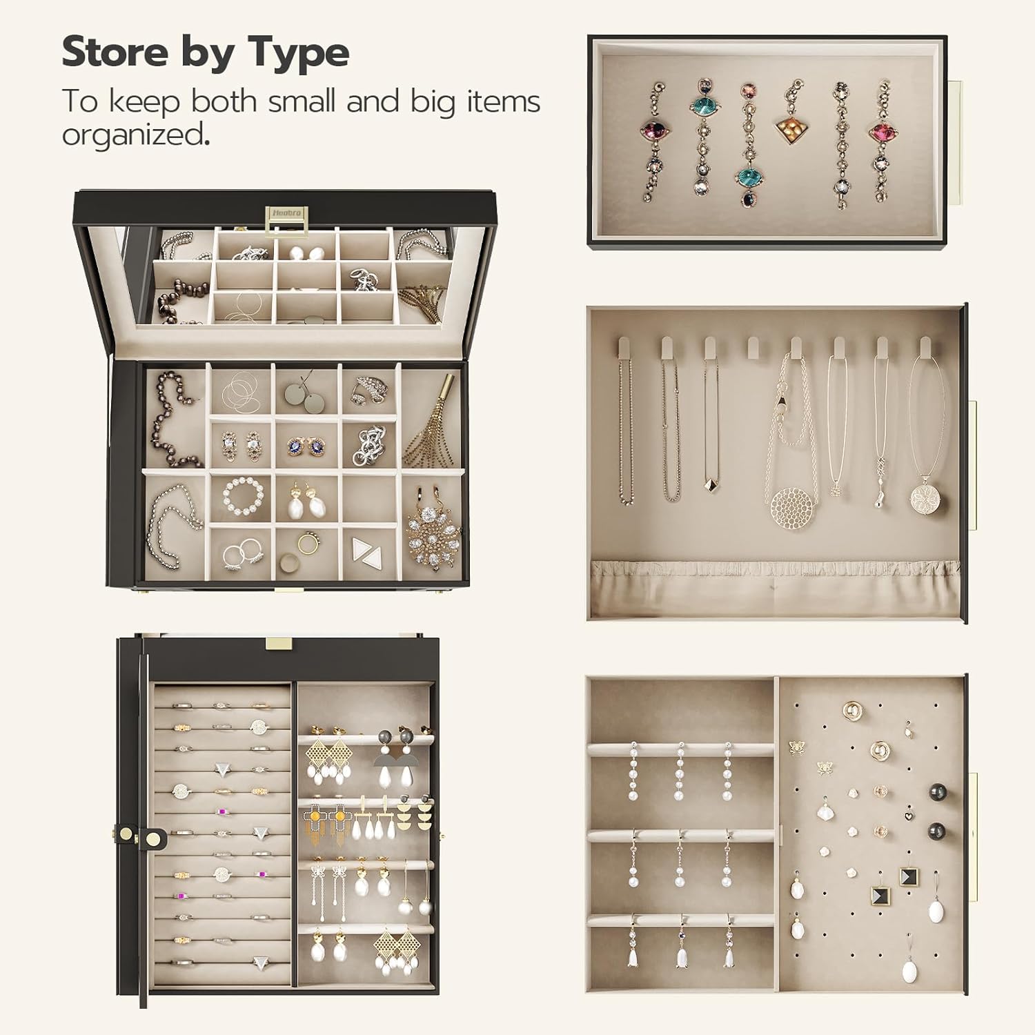 HOOBRO Jewelry Box with Mirror, Travel Jewelry Organizer with Glass Window, Vertical Storage, Christmas Gift, Gift for Loved Ones, for Earrings, Rings, Necklaces, Bracelets, Black BK03JB04G2