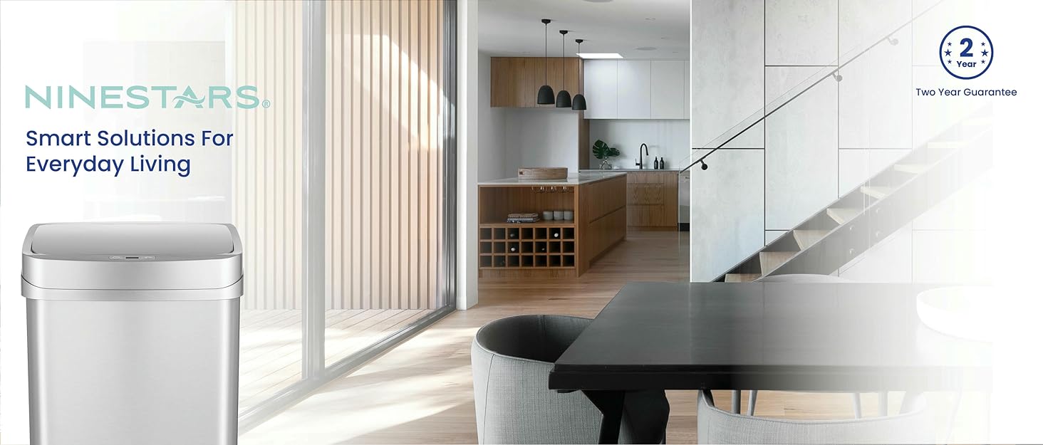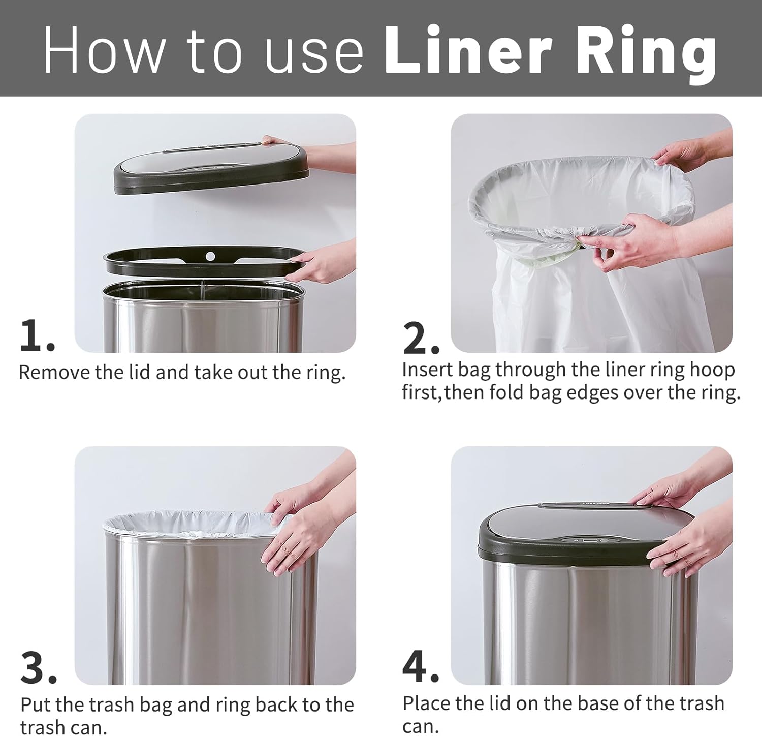Ninestars Automatic Touchless Infrared Motion Sensor Trash Can, 13 Gal 50L, Stainless Steel Base (Rectangular, Black Lid), Black Trim