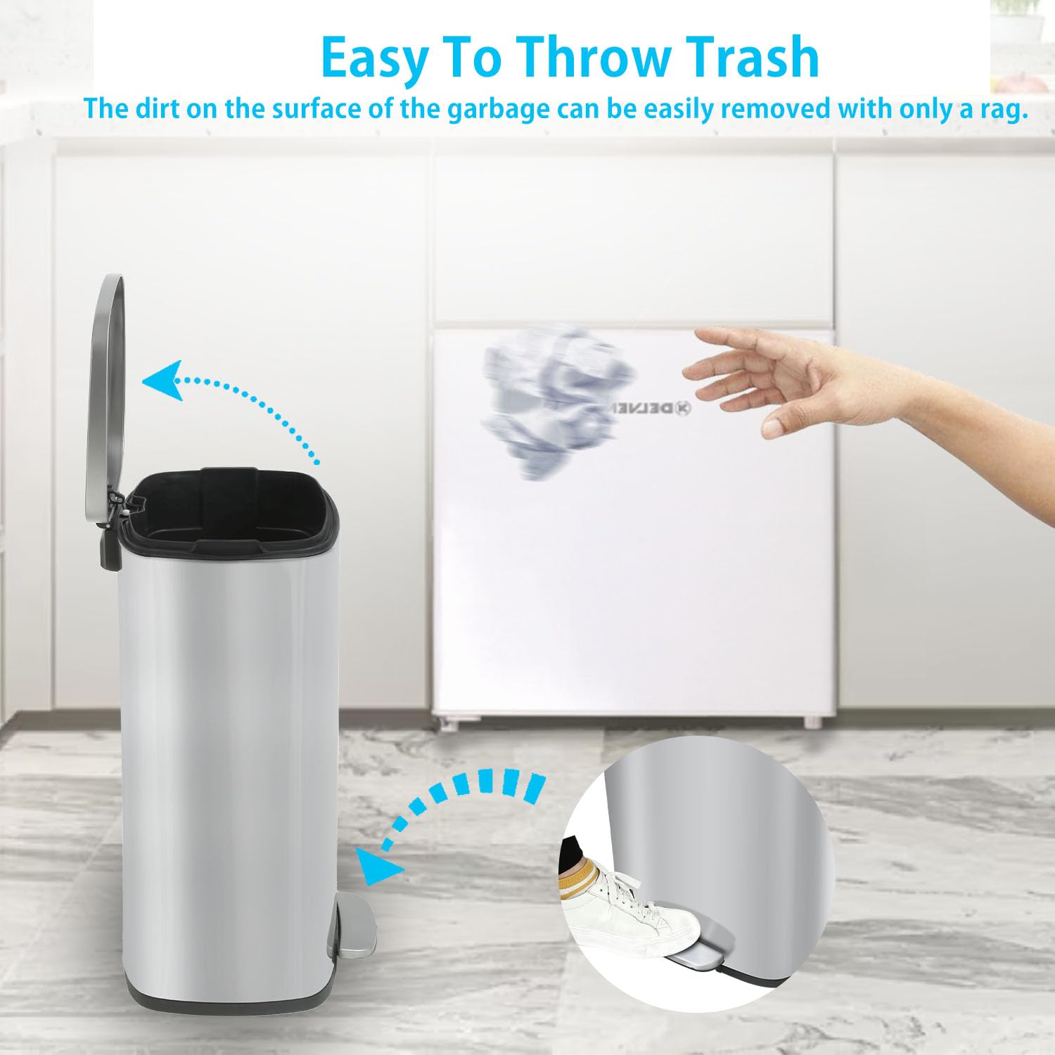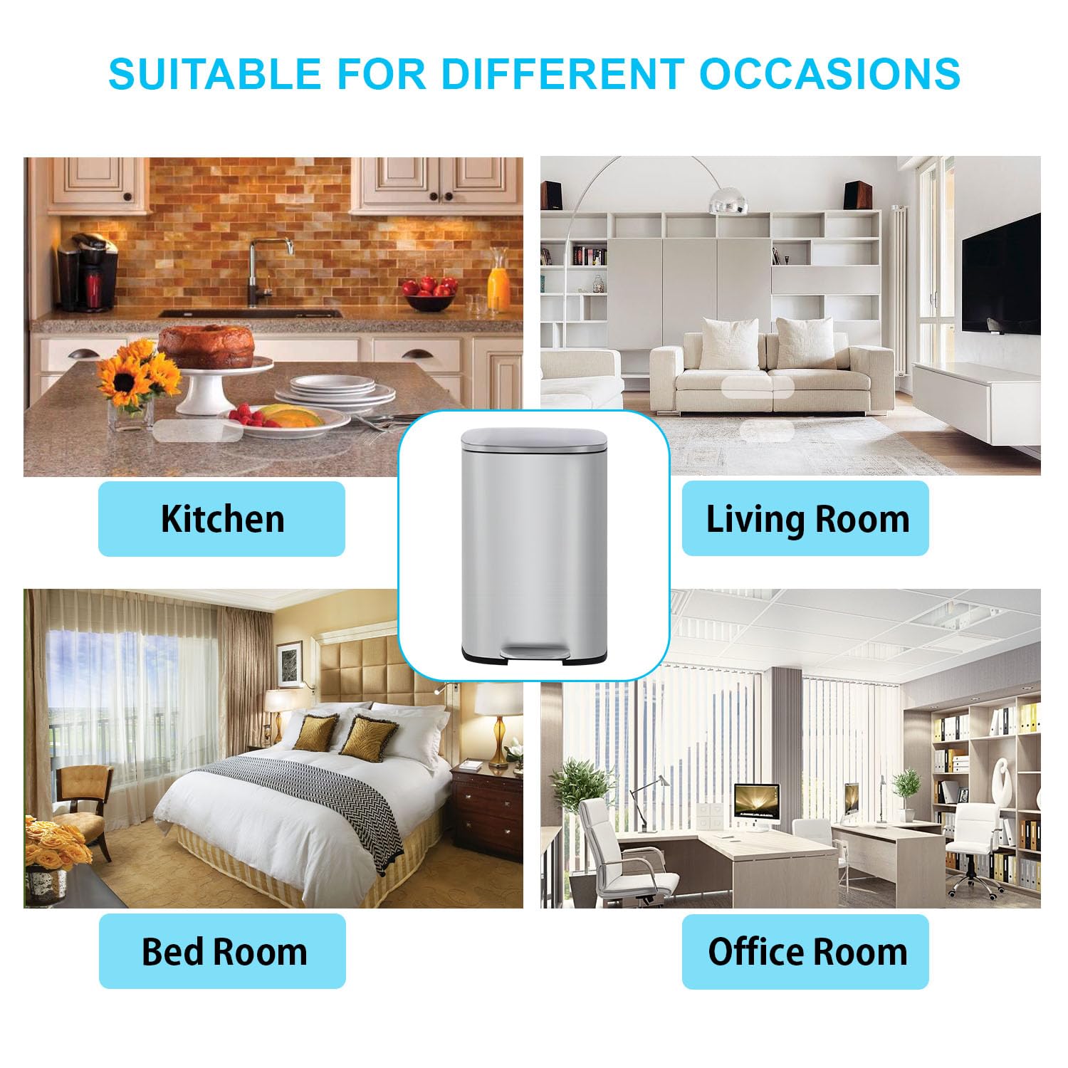 PayLessHere 13 Gallon (50L) in Home Recycling Bin Kitchen Stainless Steel Recycling Bin with Lid Removable Inner Bucket Foot Pedal Soft Close for Office Home Kitchen Garbage Can Trash Bin